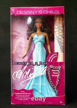 Destiny's Child Barbie Dolls Beyonce Knowles, Michelle Williams, and Kelly Rowland Includes Posters and Charm Bracelets Never Removed From Boxes Boxes are in Very Good condition with light to normal wears: creases, crinkles, edge wear, scuffing, etc. See close-up photos of actual items.